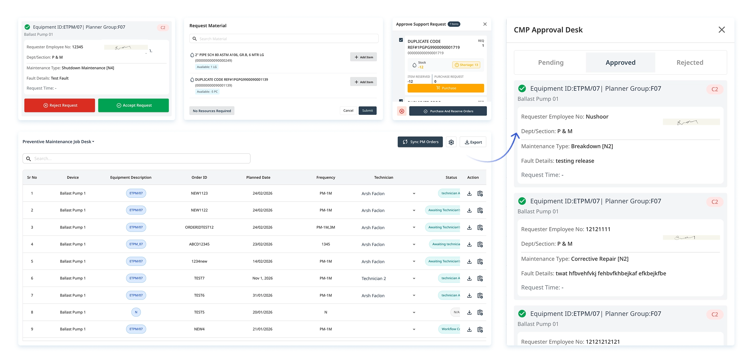 Centralized software to manage preventive maintenance schedules, spare parts, and track reliability metrics like MTTR and MTBF