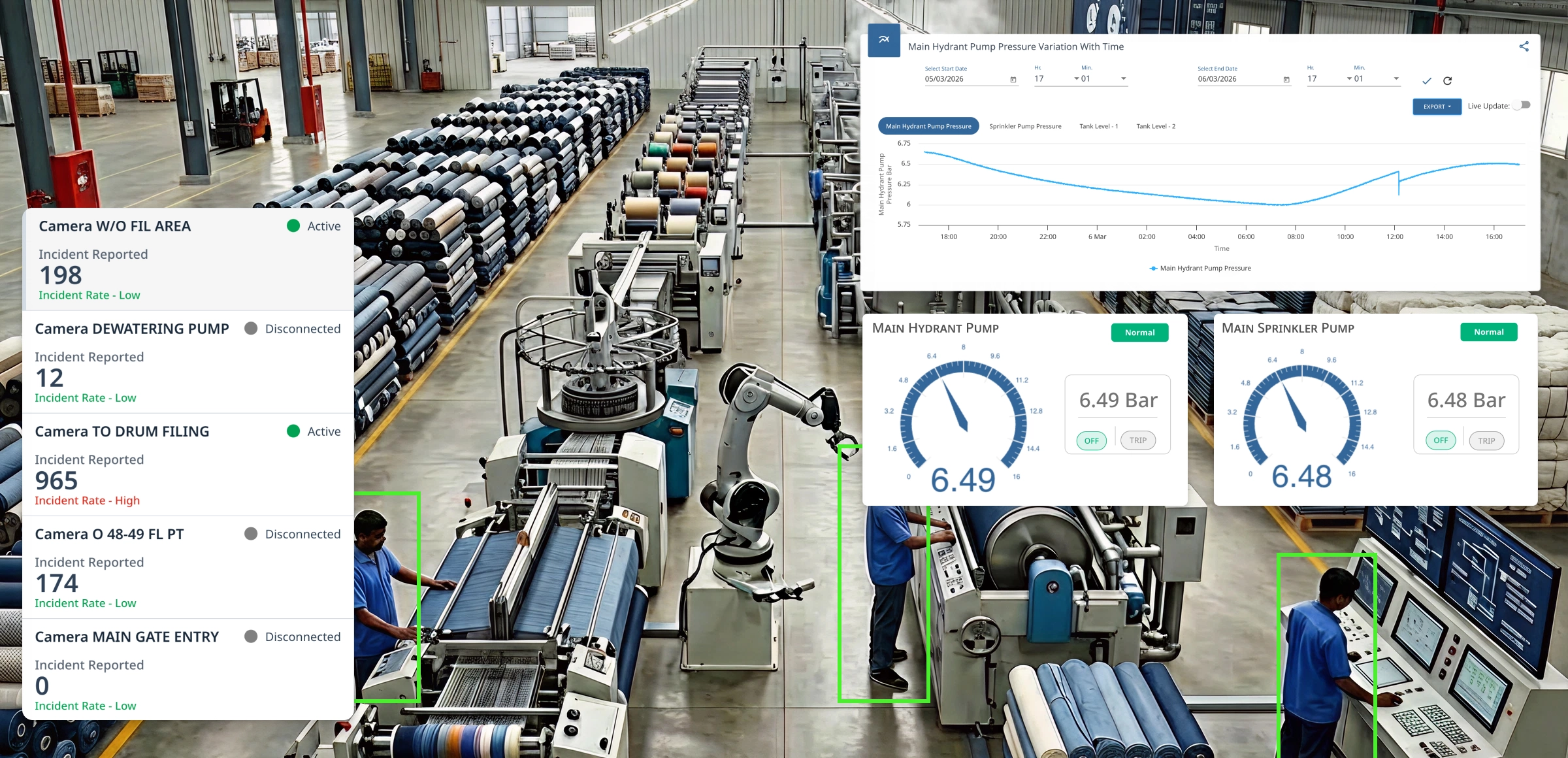 Specialized 24/7 surveillance of the Fire Fighting System and hydrant pressure to ensure immediate readiness in high-risk cotton and fabric storage areas